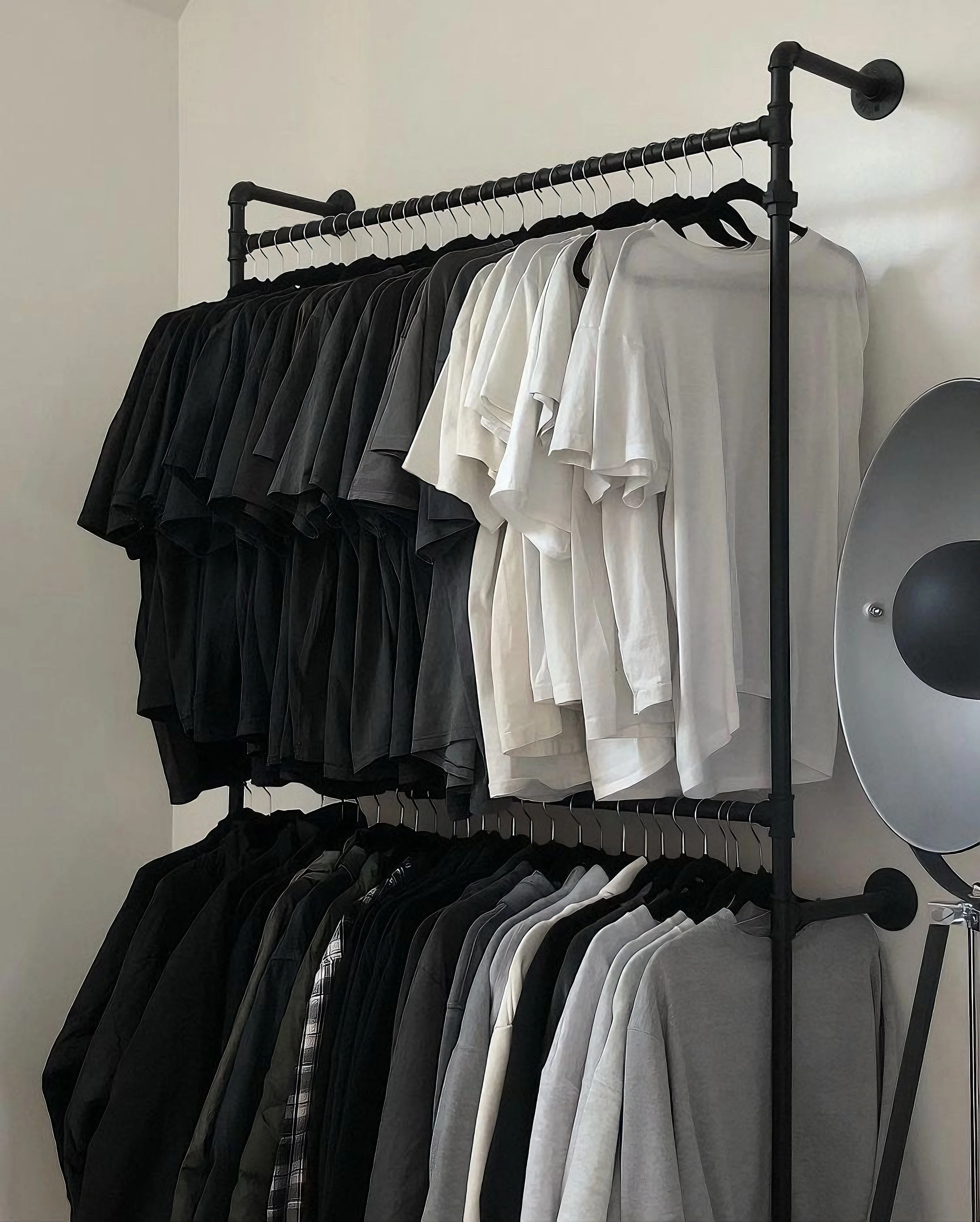 I KNOW that many of us are tired of the boring classic bedroom closets. Pipe clothing racks add that loft apartment style aesthetic to any space. These are definitely rising in popularity and it’s something to put on your decor list of wants.
