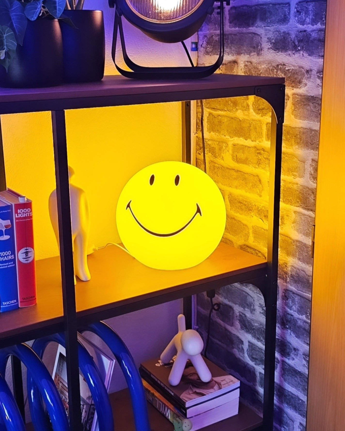 Diving into some of his favorites within his home. He states “Most of the objects in my home are favorites, otherwise, they wouldn't be here. Some of my key pieces include my spiral stand from Gustaf Westman, my Smiley lamp, the Keith Haring Bearbrick, and my Hoptimist figurine. Regarding lighting, I love the "Bang" lamp from Bangoibanga for its dreamlike quality and my lava lamp for its soothing effect.”